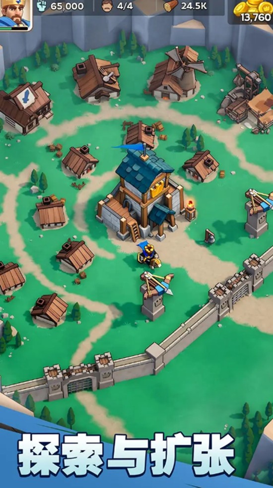 在奔奔王国中,游戏初期以塔防挑战为核心内容。玩家需要操控领主角色,通过虚拟摇杆触发技能,指挥随从单位协同作战,抵御一波又一波的敌人进攻。成功防守后,可获得金币与建材奖励,这些资源是后续建设村庄的基础。随着关卡推进,玩家将逐步解锁村庄经营系统,开启属于自己的王国发展之路,每一场胜利都为领地扩张提供支持。