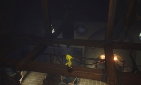 小小梦魇的核心玩法围绕探索、解谜与潜行展开。玩家将操控一名名为小六的黄色雨衣孩童,在一个充满压抑氛围的诡异世界中前行。整个游戏世界构建得极具层次感,从阴暗的厨房到扭曲的豪宅,每一处场景都透露出腐朽与不安。你需要通过攀爬、躲藏、推动机关等方式逐步推进流程,过程中几乎没有战斗系统,更多依赖环境互动与时机把握来避开敌人追捕。