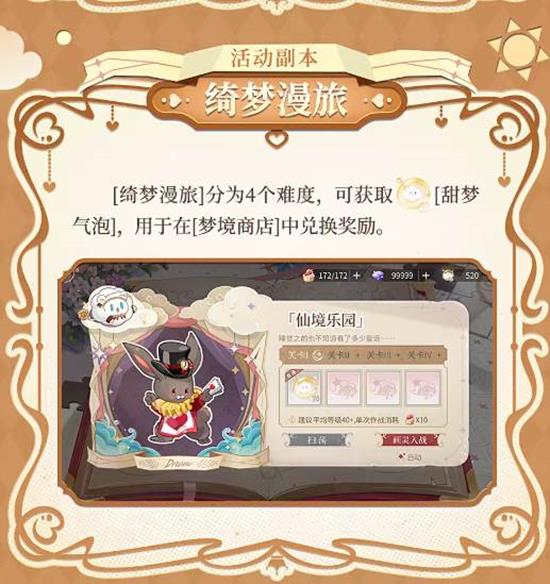 ►[绮梦漫旅]&[梦境商店]:通过[绮梦漫旅]获得道具[甜梦气泡],可在[梦境商店]中消耗获取奖励。