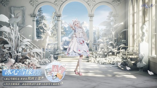 1.冰心雪缘复刻外观礼包:限时礼包售卖期间,合伙人可以4.6折的价格直接购买冰心雪缘外观礼包,内含摄像机镜头动态动作【萌晶雪梦】、拍照场景【雪韵仙庭】、拍照动作【雪绽舒怀】、拍照运镜【萌晶雪梦】、背景音乐【萌晶雪梦】、聊天气泡【躲猫猫】、潮流色卡*26和遇之钥*40,该礼包永久限购1次。