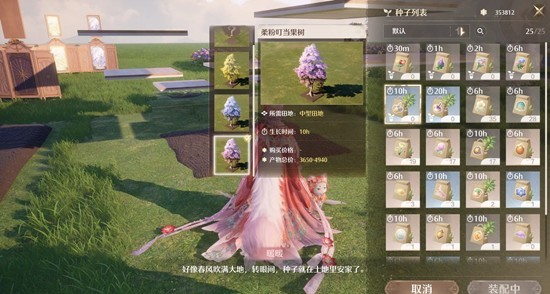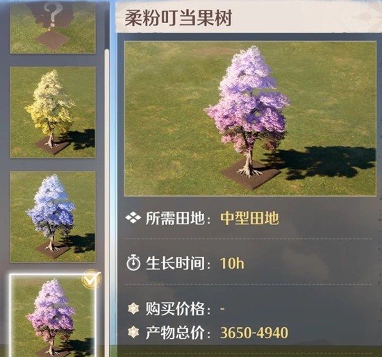 柔粉叮当果、岚绿织云果、蜜黄团团花,一天收一次可卖约15w,4天可达上限