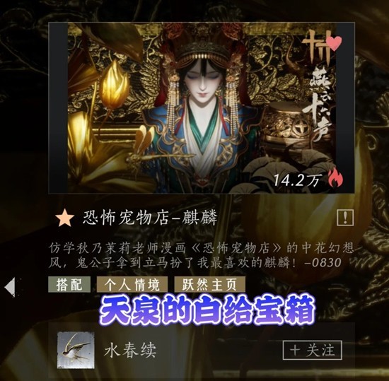 门派名片1800,聊天气泡1500,门派头像450,门派题跋300,真心题跋600,置景栖香台1000,姿态素手生香600,壁咚宋元1万(侠缘4级同款免费送)
