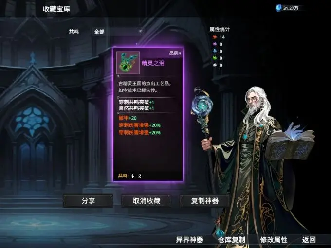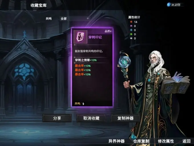 神器行者奥罗瑞恩传奇中关于穿刺暴击游侠,可以选择众神的骰子、破界之箭、精灵之泪、穿刺印记。各个不同的装备有对应的加点方案内容,只需在收藏馆异界神器汇总输入分享码即可获得,获得的时候会随机重置一个属性。