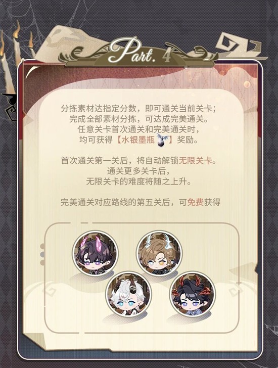 *首次通关第一关后,将解锁无限关卡,无限关卡不会获得【水银墨瓶】奖励。