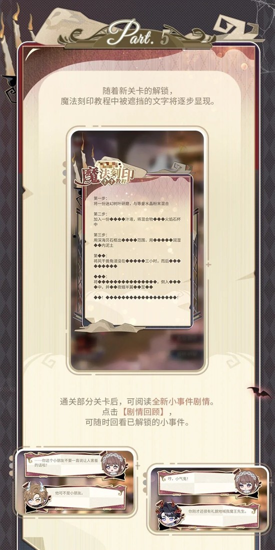 随着新关卡的解锁,魔法刻印教程中被遮挡的文字将逐步显现。