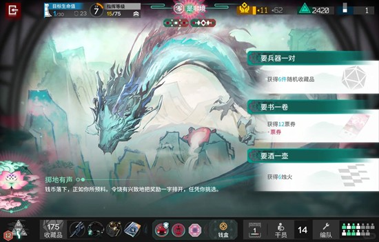 下面就可以领奖励了,去换六个随机藏品,直至烧水壶出现,中途少钱就换票投币,维持在1000以上,少烛火就换烛火。