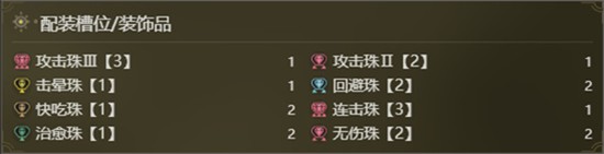 腰部选择雪狮子王腰甲β,可插入快吃珠与治愈珠,优化补给效率并提升持续作战能力。脚部则使用暗器蛸护腿β,配备两枚无伤珠和一枚治愈珠,显著提高在怪物攻击下保持无伤状态的概率,配合狩猎笛需要近身演奏的特性,大幅增强战斗中的稳定性。