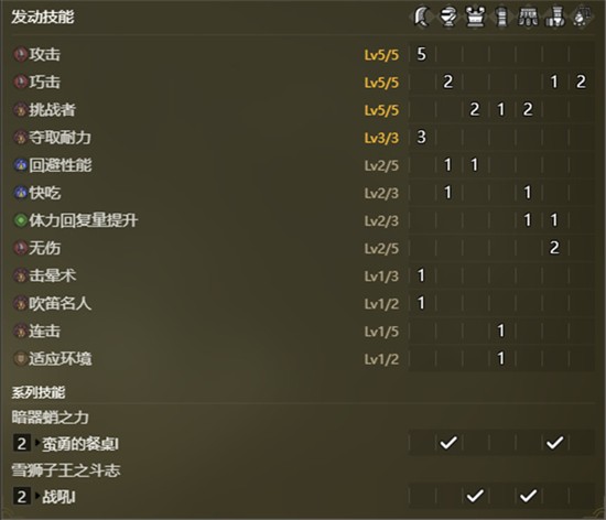 技能加成方面,整套装备最终达成的核心技能包括攻击等级提升、连击、无伤、治愈、快吃与回避性能等。其中攻击珠Ⅲ与攻击珠Ⅱ的组合确保攻击技能达到较高层级,配合反攻护石Ⅱ提供的增益效果,在怪物硬直期间可打出更高爆发。连击技能通过多次命中叠加伤害,与狩猎笛频繁演奏的动作模式高度契合。