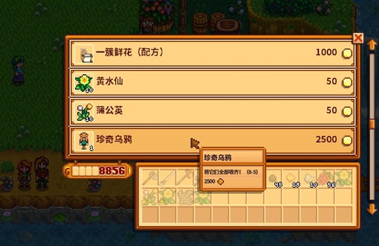 皮埃尔会在花舞节当天于森林中设立临时摊位,出售一束普通鲜花和一只装饰性乌鸦雕像,价格分别为200金币和3500金币。前者实用性较低,后者纯粹为收藏品,对农场发展无实质帮助。建议新手优先保障种子、动物饲料等资源储备,避免因冲动消费影响前期经济节奏。另外,节日当天所有商店、铁匠铺均不营业,务必提前准备所需物资。