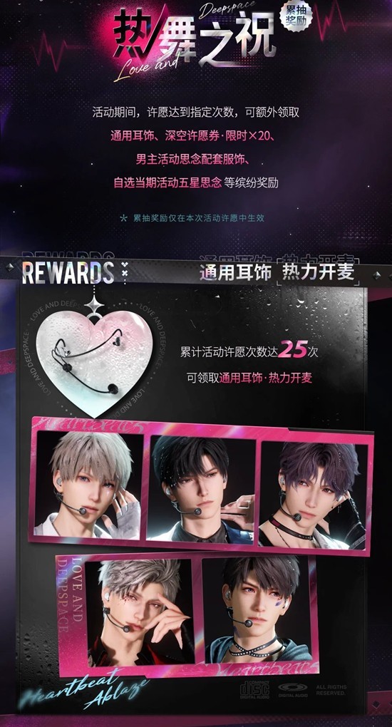 累计活动许愿达25次,可领取通用耳饰「热力开麦」;