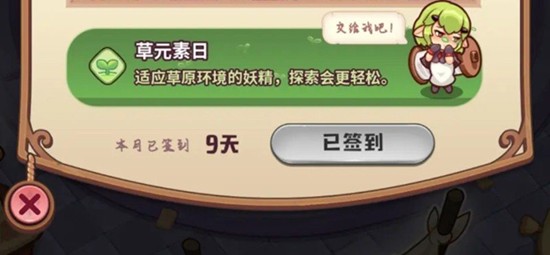 每天的签到界面会显示当天是什么元素日,对应元素的妖精能获得20%全属性加成。利用这个加成可以让原本能力不足的妖精完成之前无法进行的工作。比如草原地图需要155点采集力,非元素日147点采集力的妖精无法获得全部素材,但在元素日加成下采集力提升到176点,就能顺利采集155点的素材了。