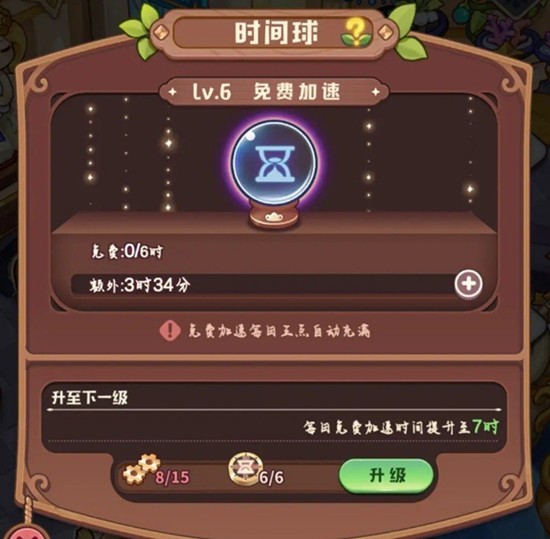 在有材料的情况下应该优先升级时间球。初始时间球每天提供1小时免费加速时间,凌晨五点重置。每升一级时间球就增加1小时免费加速时间,尽早升级时间球可以节省大量游戏时间,对诺弗兰物语前期发展非常有利。