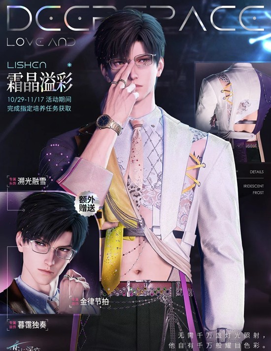 每套「活动思念配套幻色服饰」中均包含对应男主的服装与3款饰品,并可拆分搭配。