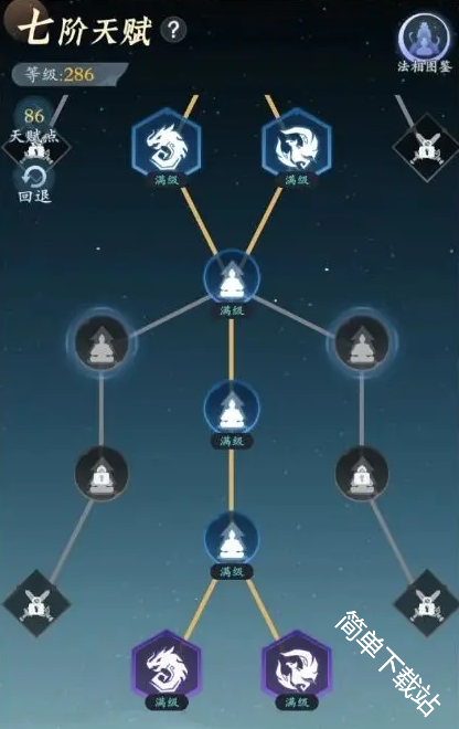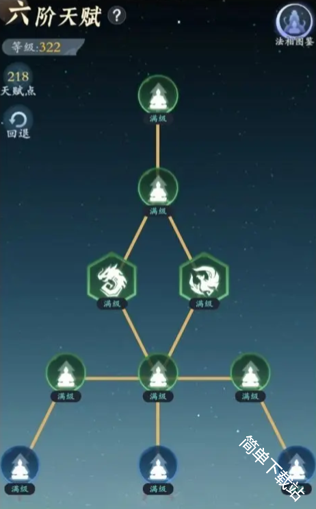 6阶消耗358点天赋点,165个真灵血玉,2451个真灵血气就可以点到322级解锁7阶法相
