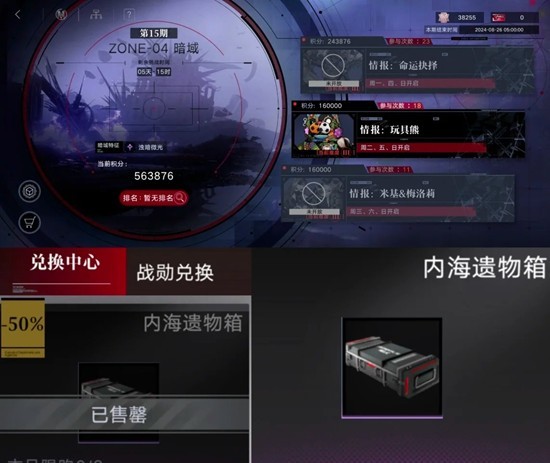 样本兑换:打深井得的,可以换角色开专烙的材料,最好把每月折扣的先换完,优先换金色的,其次换紫色的,蓝色的最好不换