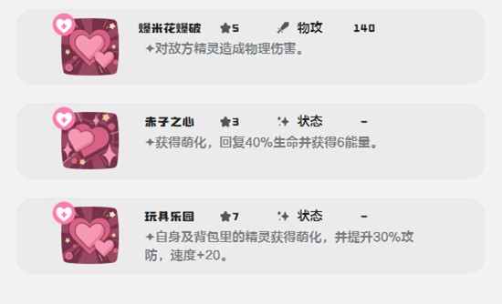 超级糖果是奇梦咪的核心输出技能之一,拥有高达130威力的物理伤害,在释放后还能使自身进入萌化状态。这一状态不仅能提升部分技能效果,还能在对战中干扰对手判断。配合其可爱的外表,往往能在心理层面给对手造成一定压力。该技能在日常刷图和PVE挑战中表现尤为亮眼,清怪效率高,是主力输出手段之一。
