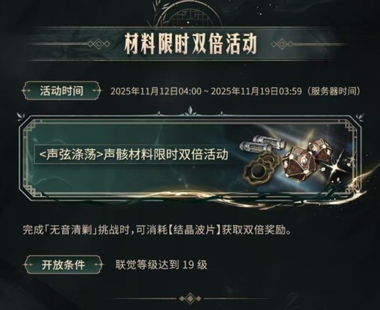 完成[无音清剿]挑战时,可消耗[结晶波片]获取双倍奖励。