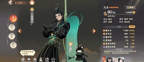 夫差:坐地踏破/暴抗爆伤离火,940黑曜,攻击加成猫