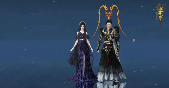 时装【鎏星绛夜/嚣焰齐天】还可通过衣形变功能,去除女款的纱裙与男款的披风与毛领,尽显飒爽风姿。