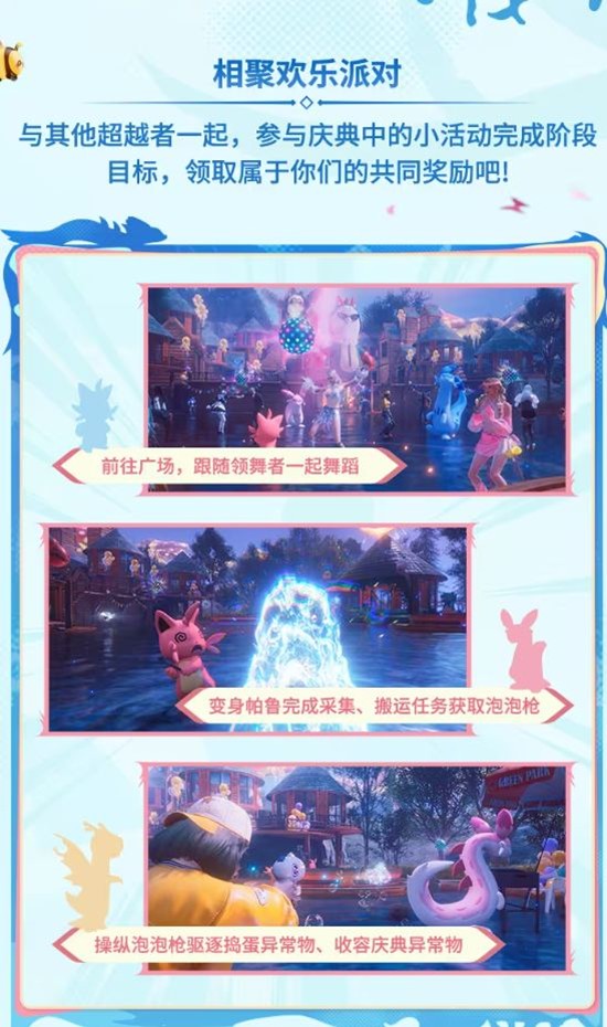 与其他超越者一起,参与庆典中的小活动完成阶段目标,领取属于你们的共同奖励吧!