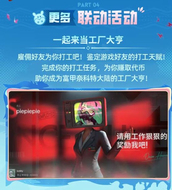 免费联动外观、限定外观、丰富的活动和奖励,让这次联动成为一场不容错过的冒险。快来参与活动,解锁你的专属奖励,享受这场奇妙的联动盛宴吧!