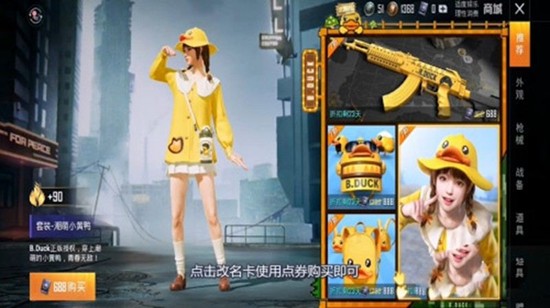 在和平精英商城中也可以直接购买改名卡。进入商城界面后选择道具分类,在右侧礼盒区域下方可以看到一个小图标,点击进入就能找到改名卡商品。使用点券支付后即可获得改名卡道具,购买成功后道具会自动存入玩家背包中。