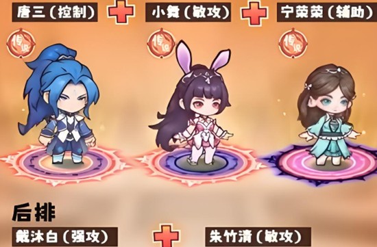 这套阵容是口袋斗罗大陆前期较为均衡且容易成型的组合。其中小舞和朱竹清作为双输出核心,具备较强的单体爆发能力,能够在战斗中快速点杀敌方关键目标。两人技能衔接顺畅,在集火状态下可迅速削减敌方战力,尤其适合应对Boss战或精英怪。唐三则承担控制职责,其技能不仅具备范围控制效果,还能附加额外伤害,有效压制敌方行动并削弱血量,为输出角色创造良好的输出环境。