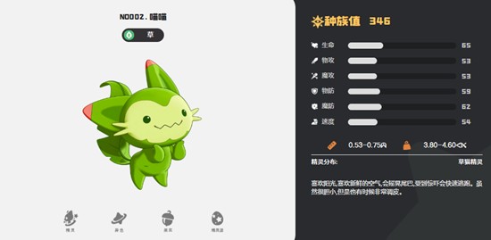喵喵作为草系初始精灵,定位偏向半肉与持续作战。其最大优势在于拥有较高的基础生命值,并具备技能回血机制。每次释放技能时,喵喵可恢复自身最大生命值15%的血量,这意味着生命数值越高,回复量就越可观。这一循环机制让喵喵在长时间战斗中具备更强的续航能力,适合打持久战或承担前排抗伤角色。
