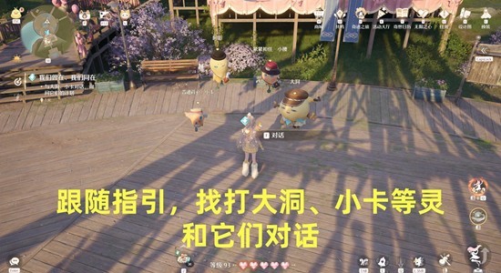 我们传送到 搭配师营地 锚点,跟随指引,找到大洞,小卡等灵,和它们对话;