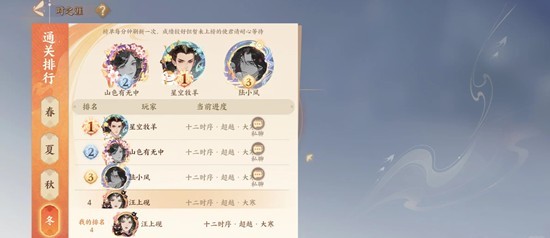 PS:萧绰+刘娥也能打穿时之涯冬12,但是最好配上祖冲之,可以同时4个人叠娥月。