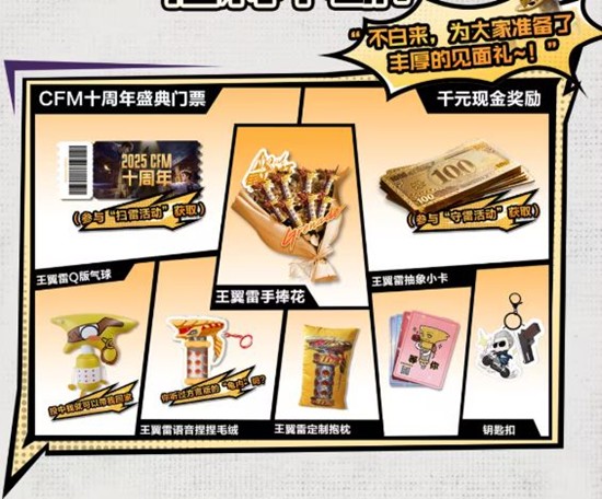 高校A小道:在各高校“A小道”附近,藏有“真假王翼雷道具”,找到王翼雷后,100%获得王翼雷周边!如果足够幸运,找到“真王翼雷”,更可获得CFM十周年盛典门票。