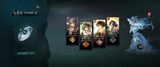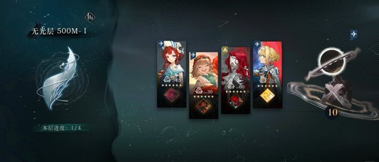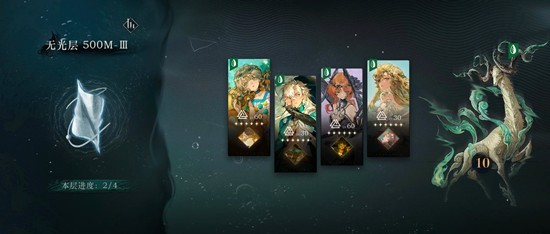 第四层,有能力的话可以带2254,把第三层的2254换成水星。也可以带狗狗,带狗注意要把赛梅放它前面。这关的要点就是不出攻击牌,全出吟诵。如果像我这样全员0塑但是有完全体薪血队可以像我这样带智系背后灵,选择官方的行动强化,诺谛卡大招前放背后灵技能。