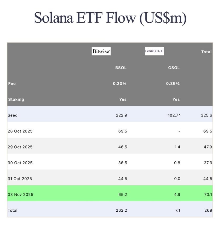 Solana ETF单日吸金7000万美元,彰显机构信心,即便加密市场整体面临资金外流。来源:SolanaFloor(X平台)