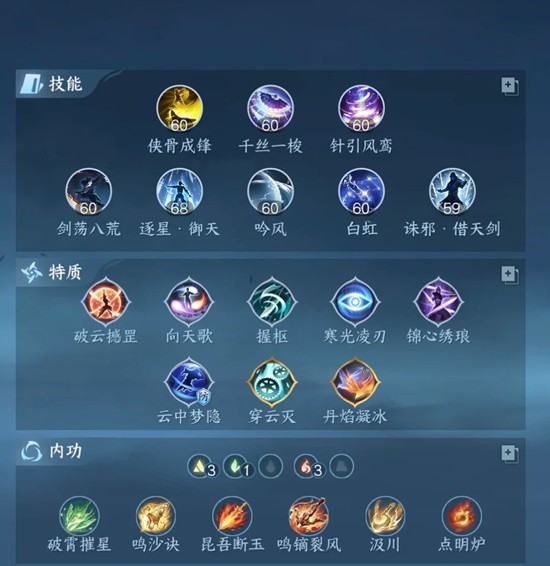 注意如果你上点明炉,带老绝技+新群侠+普通凤城特质+绝技百家染成蓝色;如果你不带点明炉,用新绝技,凤城特质用华彩。