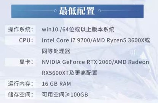 CPU:Intel Core i7 9700/AMD Ryzen5 3600X或同等处理器