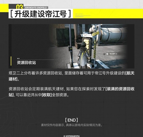 资源回收站会定期装满航天建材,如果您在探索时发现了[装满的资源回收站],可以靠近并从中[收取]全部资源。