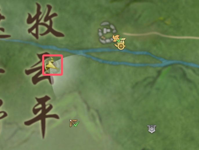2、【米护】让我们去找【博鲁】借猎犬,【博鲁】 在地图左侧牧云平的云字。