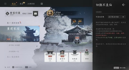 我们明白,不羡仙中残留的焦痕与灰烬,对每位少东家而言,承载着不同的意义与重量。如今单人模式下,不羡仙中家业内容自由显隐功能已经开启,游侠只需在家业界面打开「切换不羡仙」功能,即可依心境展现不羡仙风貌。是以重建昭示新生,还是保留那份寂静残垣以寄托旧事之憾,皆由你决定。