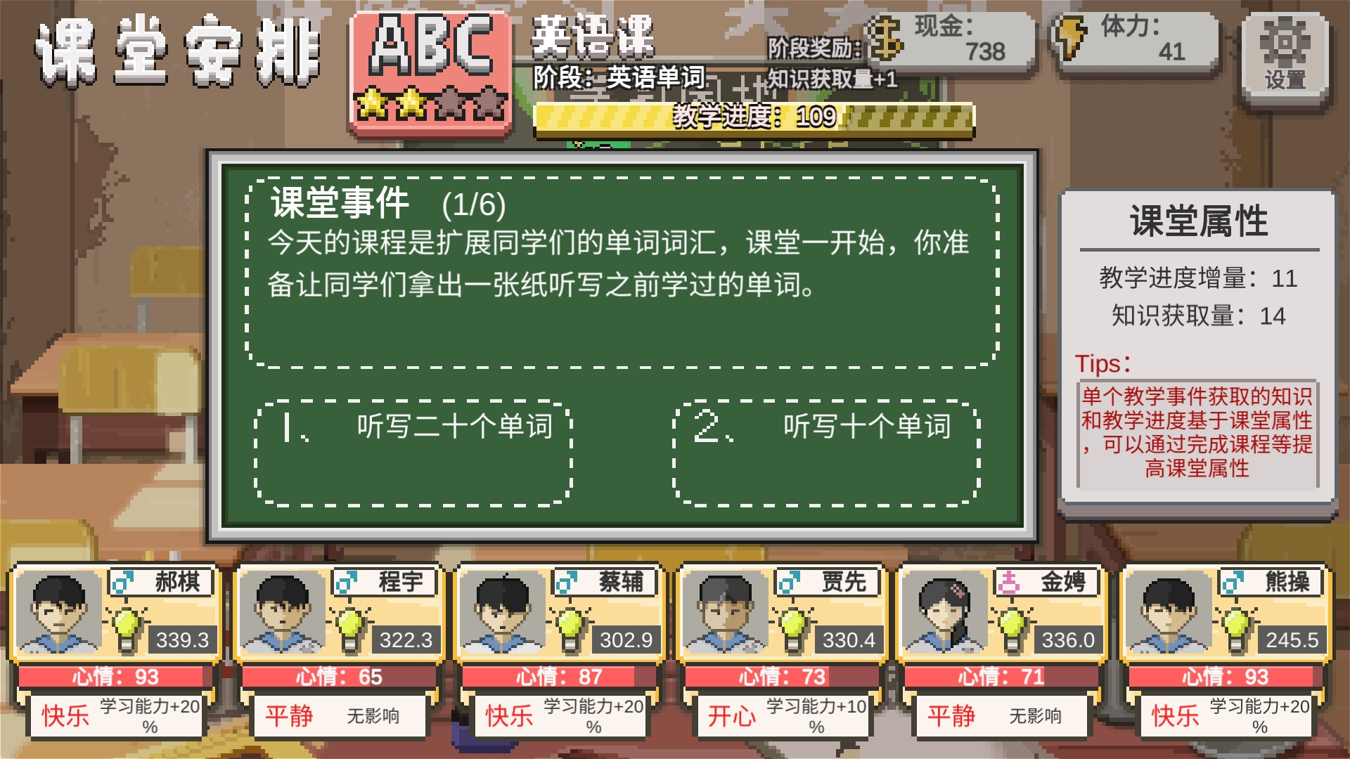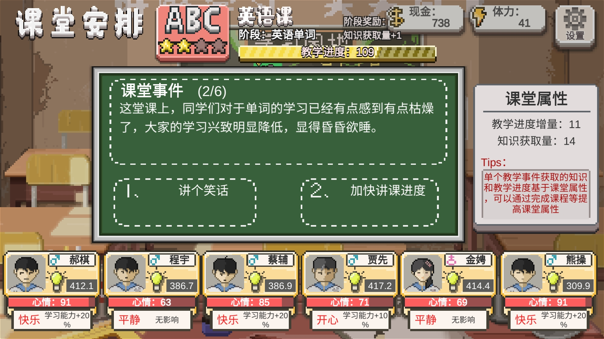 9、这堂课上,同学们对于单词的学习已经有点感到有点枯燥了,大家的学习兴致明显降低,显得昏昏欲睡?讲笑话加心情另一个加学习进度