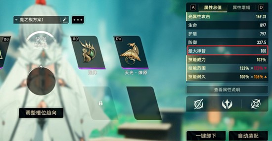 在魔之楔搭配方面,左右位推荐使用与幻景同属性的神智型或技能威力型魔之楔。例如天光燎原、陷阵等具备高技能效益加成的魔之楔,均能有效提升幻景的整体输出效率。由于幻景的伤害模型不依赖暴击与爆伤,专注、盛怒、缠搏等双爆类魔之楔并不适配,应避免使用。重点应放在技能威力、技能效益、攻击力与最大神智的综合提升上。