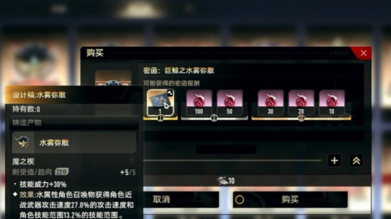 幻景的毕业级魔之楔套装为水雾弥散,该套装提供高达30%的技能威力加成,并在切换武器时额外提升输出倍率,是目前二重螺旋中加成最为可观的魔之楔之一。但该套装获取难度较高,需通过密函任务解锁后,收集特定材料打造。建议玩家在完成前期过渡搭配后,逐步推进任务以获取该套装,实现幻景输出能力的质变。