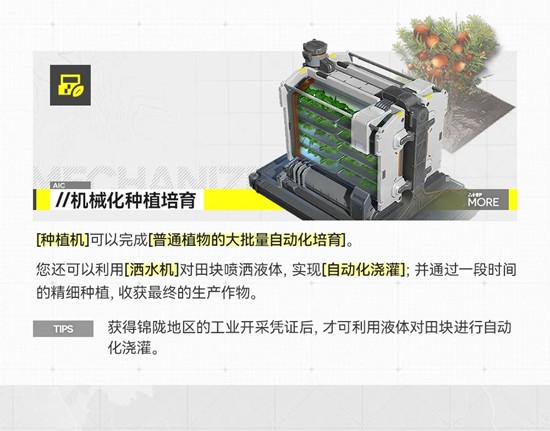 TIPS:获得锦陇地区的工业开采凭证后,才可利用液体对田块进行自动化浇灌。