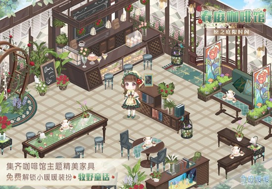 11月12日—11月18日,在小屋限时抽奖阁“春庭咖啡馆”许愿,可获得咖啡馆主题家具!集齐所有限时家具还可解锁小暖暖装扮“牧野童话”!