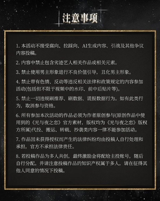 赛道一:投稿话题:#光启市年度好物分享、#光与夜之恋(需挂上全部话题视为参与活动);