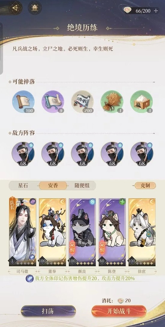 2.找有五个小兵的关卡刷,最好都是同属性,控血控成一样不会出错,比如兵书历练最后一关