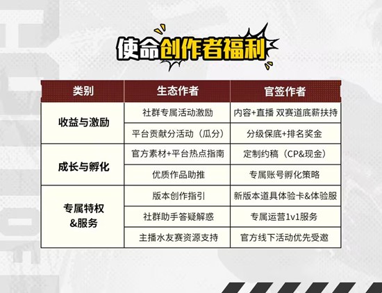 专属特权&服务:包括版本创作指引、新版本道具体验卡&体验服、社群助手答疑解惑、专属运营1v1服务,以及官方线下活动优先受邀等。
