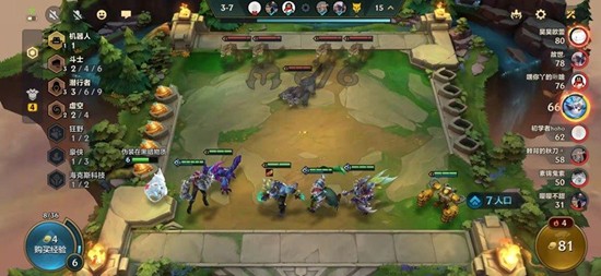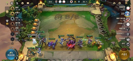 开局阶段可以选择拿阵容要求的低费卡,先凑出1机器人3斗士3潜行2虚空的过渡阵容。斗士和潜行羁绊在这个阶段非常重要,可以用狼人暂时替代卡莎的位置打工,把卡莎的装备先给狼人使用。