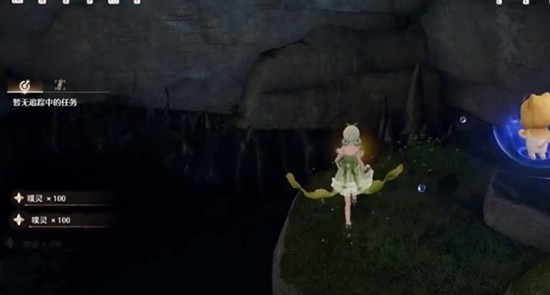 沿着左侧小路来到墙壁交互点,这里可以获得灵感露珠。