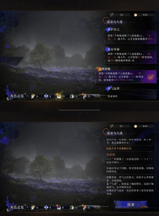 攒两个(第二个在休憩地里选安抚),“感知”属性高的话应该是会自动出现,选去找她的话结局二里面也是这个花蜜的“她”会来领人,所以大概率p3是一定要拿到的