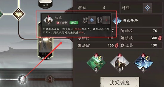 步练师的被动技能可为携带她的主将提供额外的法术攻击加成,同时提高主将释放治疗技能时的效果。当她搭配荀彧使用时,荀彧的扶危技能基于自身法术攻击比例恢复兵力,配合步练师的属性增幅,治疗量显著提升。若触发暴击,甚至能实现单体满血复活的效果,在关键时刻扭转战局。这种联动机制使步练师+荀彧成为前期极具性价比的组合之一。